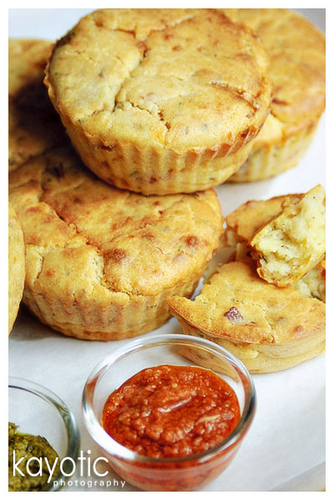 In pursuit of the one perfect ‘leftover mashed potatoes‘ recipe, I think I’ve come pretty darn close this time. I figured if I can turn the mashed taters into pancakes and soup, I should be able to turn them into muffins too, right? Throw in some onions, bacon, cheese and well, it could work. And it sure did! Kay