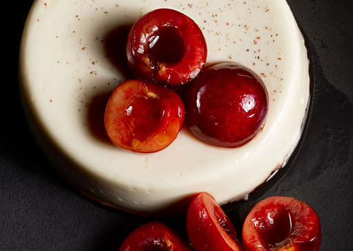 Pink Peppercorn Panna Cotta with Macerated Cherries