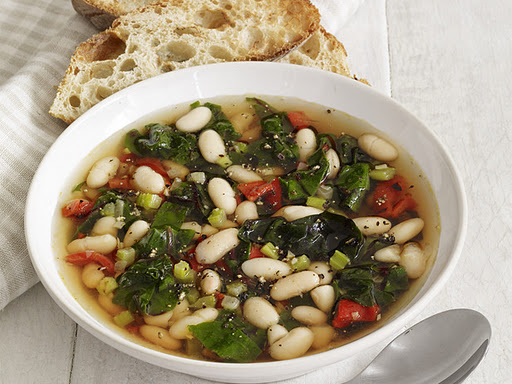 Heat light butter in a medium pot over medium-high heat. Add the onion and garlic. cook 3-4 minutes. Add celery and cook until the vegetables are golden brown, about 5 minutes. Add the beans, roasted peppers, and broth, bring to a simmer and cook 15 minutes.