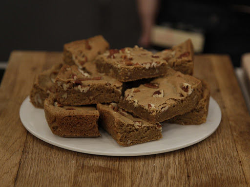 Preheat the oven to 350F and grease a 9 by 9-inch pan (or double the recipe and use a 9 by 13-inch pan).