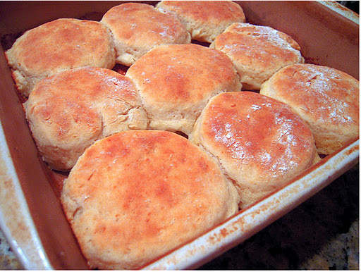 What? Yep, that's right, 7up biscuits. Some places on the internets call these Popeye's Biscuits - I guess they taste like the biscuits from the chicken place. All I know is that these were the best biscuits that I've ever made - hands down! They were light and fluffy. They only have three ingredients - quick and easy! We had them with dinner but I will make them again for breakfast. Chicken Legs wants a biscuit with bacon and cheese - YUM!