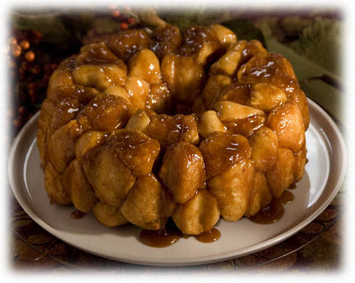 Dip roll halves in butter and then in sugar mixture. Place in a sprayed bundt pan. Sprinkle any remaining sugar mixture over rolls.