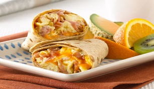 2. Spoon egg mixture down centers of tortillas; top with cheese. Fold in opposite sides of each tortilla, then roll up burrito style.