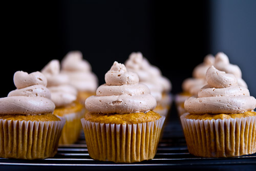 Put the frosting in a piping bag with a large round tip and frost the cupcakes in a swirling pattern.