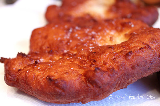 Drain on a paper towel lined plate, season with kosher salt and eat while hot. My preferred way to enjoy hot lángos is by rubbing a peeled fresh garlic clove. Heaven!