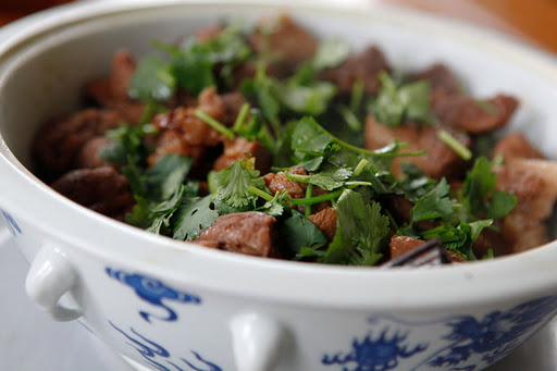 Mix well and then cover the wok tightly. Turn the heat down to medium and let simmer for 1/2 hour. Remove and serve with freshly chopped cilantro.