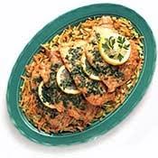 In a 10-inch skillet melt the remaining margarine or butter. Add the carrots, zucchini, and garlic and cook for 2-3 minutes, or till carrots are crisp-tender. Transfer vegetables to a serving platter, top with chicken and sauce.