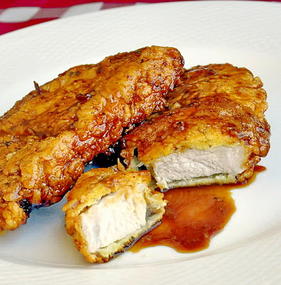 Drain on a wire rack for a couple of minutes before dipping the cooked chops into the Honey Garlic Sauce. Serve with noodles or rice.
