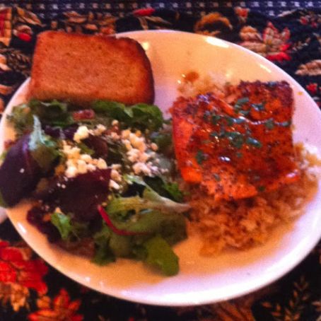Pan Sauteed Salmon with Mustard Glaze and Rice