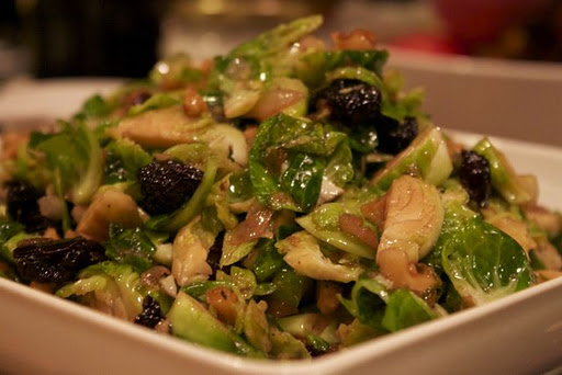 Pour the dressing over the Brussels Sprouts and season with salt and pepper to taste. Serves 5-6.