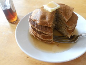 Combine dry ingredients (flour, oats, baking powder, baking soda, sugar) in a bowl and mix well. Stir in bananas and egg. When everything is evenly combined, whisk in milk. Add vanilla and cinnamon to taste. Prepare pancakes in a skillet over medium heat.