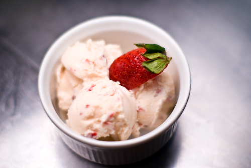 When the ice cream is done, swirl in 2 Tbs sweetened condensed milk. Serve soft or throw it in the freezer for 30 minutes to set up more like store bought ice cream.