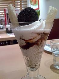 Drizzle chocolate syrup over the cream, then layer the remaining bananas, cookies, remaining whipped cream, a little more chocolate syrup and then the toasted nuts.