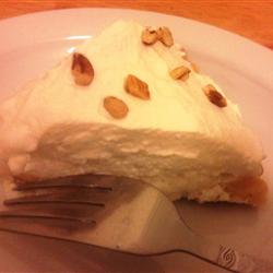 3.With an electric mixer, beat the cream with 1 teaspoon of sugar and 1/2 teaspoon of vanilla extract in a large metal bowl until the cream forms soft peaks; frost the pie with decorative swirls and peaks of the whipped cream. Sprinkle pie with chopped walnuts. Refrigerate until serving time.