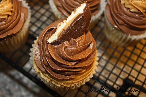 3.For half of the cupcakes, I stopped there with the peanut butter filling. On the other half, I piped a small layer of the peanut butter filling on top of the cupcake as well.