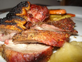 Remove meat to a serving platter; keep warm. Skim fat from cooking juices; transfer to a small saucepan. Bring liquid to a boil. Combine cornstarch and water until smooth. Gradually stir into pan. Bring to a boil; cook and stir for 2 minutes or until thickened. Slice roast; serve with gravy.