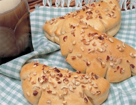 Place on sprayed baking sheet. Using scissors, cut sealed edge four times to make claws. Brush with egg and sprinkle with pecans.