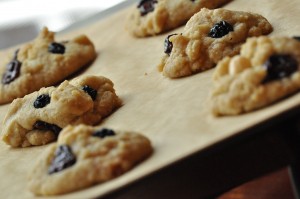 Drop by measured tablespoonfuls onto a cookie sheet lined with parchment paper, at least 1 inch apart. Bake for 8-9 minutes, or until the tops are lightly browned. Let them stand 5 minutes before removing them to cooling racks.