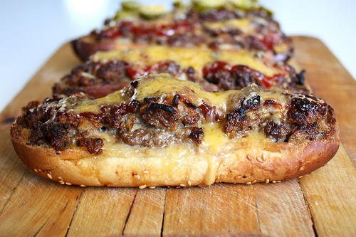 Top toasted rolls evenly with meat mixture, spreading meat to edges of rolls. Brush top of meat mixture evenly with remaining ketchup and bake until meat registers 160°F, 20 to 25 minutes. Top burgers with cheese and continue to bake until cheese melts, 3 to 4 minutes. Let rest 5 minutes. Serve.