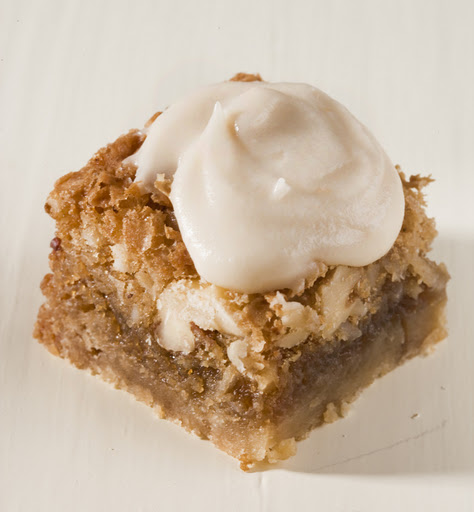 Stir in coconut and walnuts. Spread over prepared pastry. Bake 25 minutes. Cool.