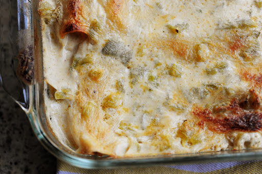 To assemble, spoon chicken mixture on top of tortillas, one by one. Top with plenty of cheese and roll up. Place seam side down in a 9 x 13 casserole dish.