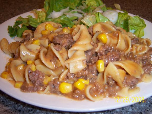 Cook egg noodles according to directions on the bag. Drain noodles and add to hamburger mixture and pour into a casserole dish or baking dish.