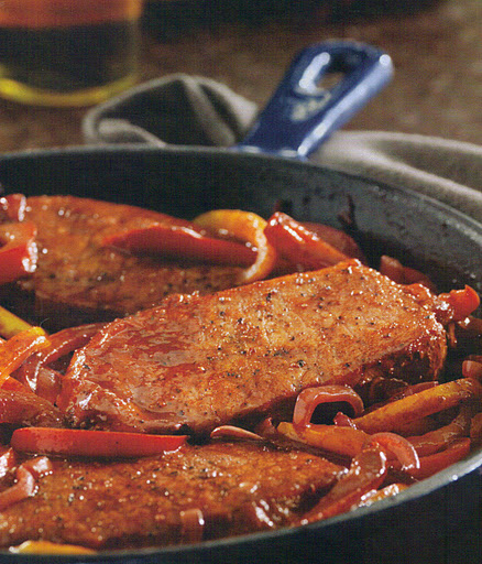 Add wine or broth and bring to a boil, scraping up and stirring in any browned bits in the skillet. Return chops to the skillet, nestle them in the liquid and reduce to a simmer. Cover and cook 4 minutes. Turn chops, cover, and cook until internal temperature reached 160° F.