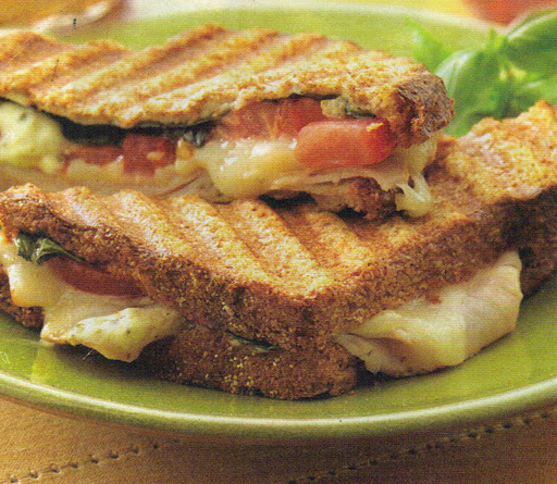 Heat large nonstick skillet or grill pan over medium heat until hot. Add sandwiches, weigh down with second heavy skillet. Place heavy object in top skillet, such as a filled tea kettle. Cook for 4 minutes or until crisp and golden brown on both sides, turning once and reducing heat to medium-low after turning.
