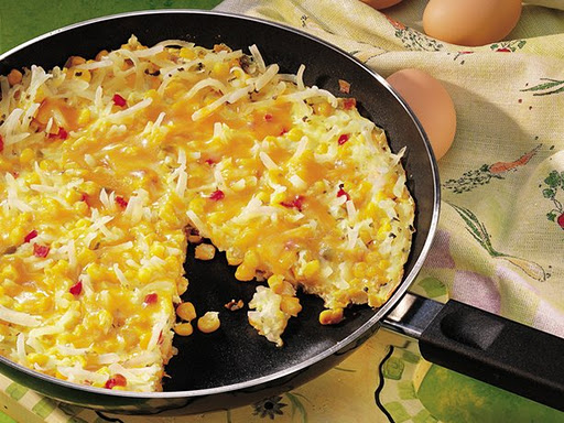1 Mix potatoes, corn and onion salt. Spray 10-inch nonstick skillet with cooking spray; heat over medium heat. Pack potato mixture firmly into skillet, leaving 1/2-inch space around edge. Reduce heat to medium-low. Cook uncovered about 10 minutes or until bottom starts to brown.