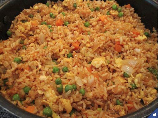 On medium high heat, heat the oil in a large skillet or wok. Add the peas/carrots mix, onion and garlic. Stir fry until tender. Lower the heat to medium low and push the mixture off to one side, then pour your eggs on the other side of skillet and stir fry until scrambled. Now add the rice and soy sauce and blend all together well. Stir fry until thoroughly heated! **You could really play around with this rice too! Try adding some diced ham, or green onion :) Yum!