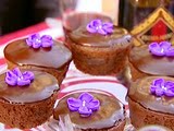 Dip the top of each cupcake in the ganache. Decorate with candied violets, if desired. Do not refrigerate.