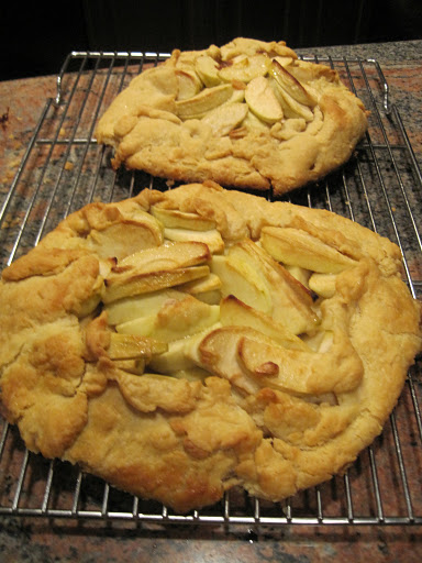 Place half the apple mixture on one crust and the other half on the other crust. Fold over the edges of each crust so that it covers 2 to 3 inches of the apple mixture. No need to be artistic - the more rustic the better. Dot the tops of the pies with chunks of the butter.