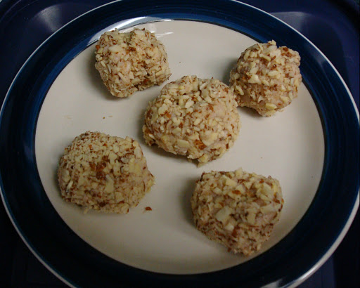 In a small bowl, beat the cream cheese until smooth. Add the melted white chips, wafer crumbs, and preserves; Beat with a hand mixer until smooth. Cover the filling and refrigerate for 2 hours or until it is easy to handle and no longer sticks to your fingers once it is handled. Shape the filling into 1" balls and roll each ball in the chopped almonds. Line a 9" x 13" airtight container with waxed paper and lay the truffles on the waxed paper. Cover and store the truffles in the refrigerator until ready to serve.