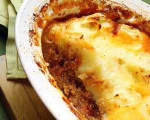 Cheesy potato-topped beef in a wine enriched sauce adds a special touch to cottage pie in this hearty recipe.