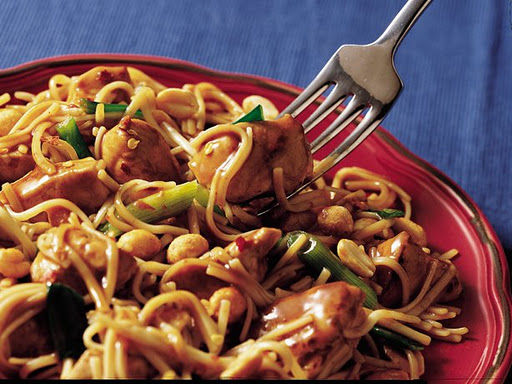 Sprinkle with peanuts and red pepper.