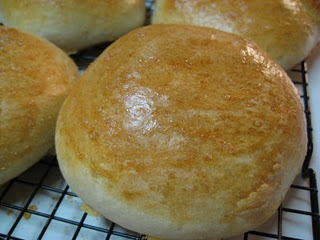 When the dough has pulled together, turn it out onto a lightly floured surface and knead until smooth and elastic, about 6 minutes (or let knead in an electric mixer). Lightly oil a large bowl, place the dough in the bowl and turn to coat with oil. Cover with a damp cloth and let rise in a warm place until doubled in volume, about 40 minutes. Punch dough down, and divide into 6-8 equal portions. Shape each portion into a round ball. Place loaves on lightly greased baking sheets sprinkled with cornmeal (or use silpat liners or parchment paper). Cover and let rise in a warm place, free from drafts, until doubled in bulk, about 35 minutes.