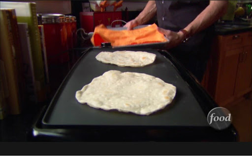 Put the tortillas, 2 to 3 at a time, onto the griddle and cook until light golden, about 4 minutes per side. Can be held for up to 2 hours, at room temperature, wrapped in a barely damp tea towel. Repeat with the remaining tortillas. Microwave for 1 minute in the damp tea towel to reheat.