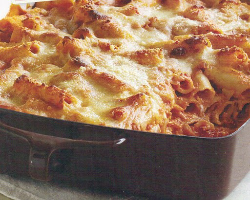 Layer half the pasta mixture in 13x9 inch baking dish; cover with layers of sour cream, 1 cup mozzarella and remaing pasta mixture. Top with remaining mozzarella and Parmesan.