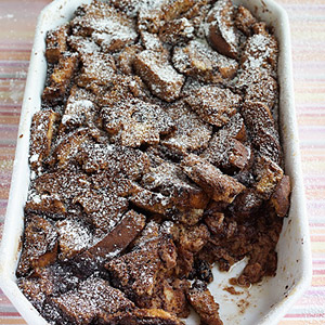 Bake the pudding until just set and a knife inserted in the center of the pudding comes out clean, about 1 hour. Serve the pudding warm or chilled with Chocolate Whipped Topping.