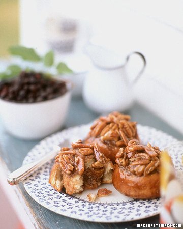 Remove the pans from the oven, and immediately turn buns out onto a second parchment-covered cookie sheet. Replace any pecan halves that fell off buns when turning them out. Place the cookie sheet on a wire rack to cool.