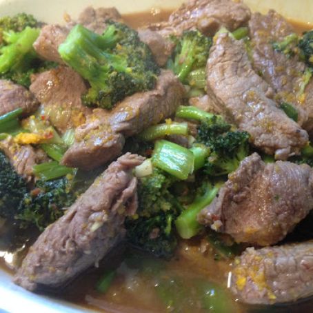4.Spray skillet with Pam and place over high heat. Cook beef for 1 minute without stirring;Add broccoli then cook and stir for an additional minute.