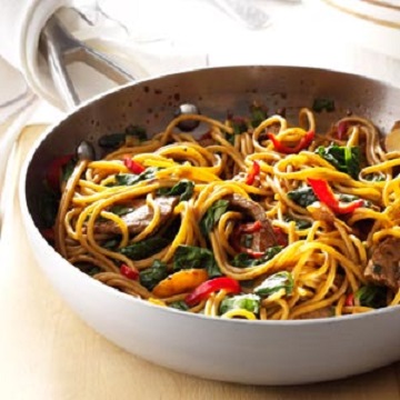 Drain spaghetti; add to beef mixture and toss to combine. Sprinkle with chili pepper.