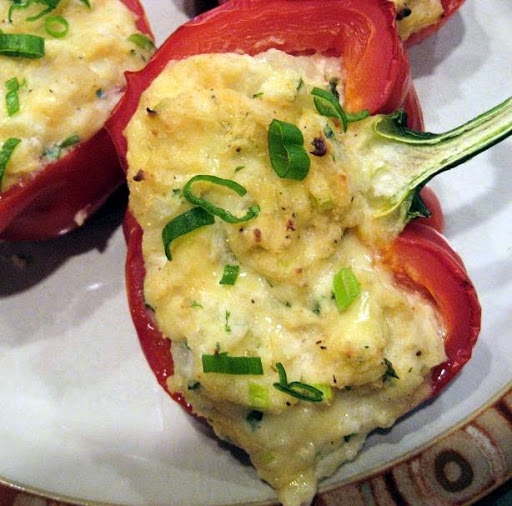 9. Place red peppers in the foil pan on the rack of the grill and close lid and grill for 15 minutes. (if using oven bake 15 minutes with foil over top of dish).