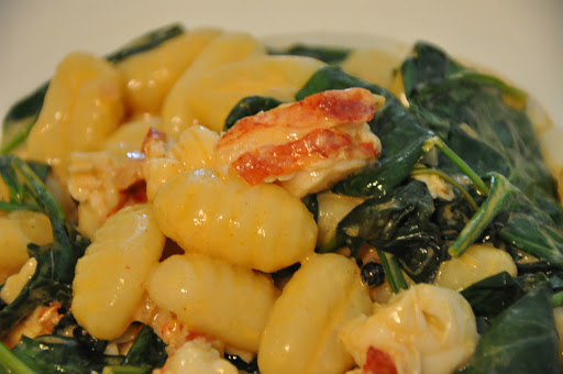 Heat cream. Add in buerre blanc. Add gnocchi, lobster and spinach. heat through until spinach is wilted.