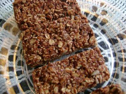 Remove from heat and add one cup of oats. Choose your favorite combination of coconut flakes, sesame seeds, sunflower seeds, dried fruit and mini chocolate chips, to equal a total of ONE CUP. (I just got out my one cup measuring cup and poured in the ingredients until the cup was full.) Pour in and stir well.