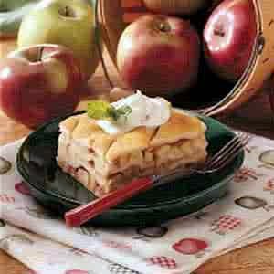 This delicious dessert has a nice bonus-no bites of dry crust without filling. The layers have plenty of apple pieces and are sweetened with a yummy syrup.