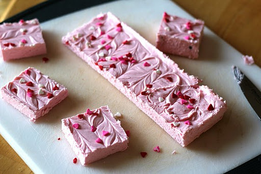 When chips are melted, remove from heat and stir in your strawberry frosting, evenly.