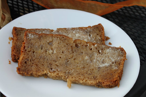 4. Pour batter into prepared bread pan and bake at 300 degrees for 1 hour and 20-25 minutes or until knife inserted comes out clean.
