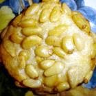 3. On a greased and floured cookie sheet, drop a spoonful of the mixture. Press pine nuts into the top of the cookie (you want to cover the top with nuts).