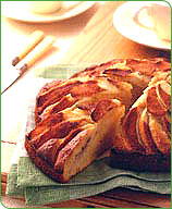 Layer apple slices in a circular pattern on top of cake. Combine cinnamon and sugar in a cup and sprinkle over apples. Bake for about 30 to 35 minutes or until a knife or metal skewer comes out clean when inserted. Cut into 8 pieces and serve.
